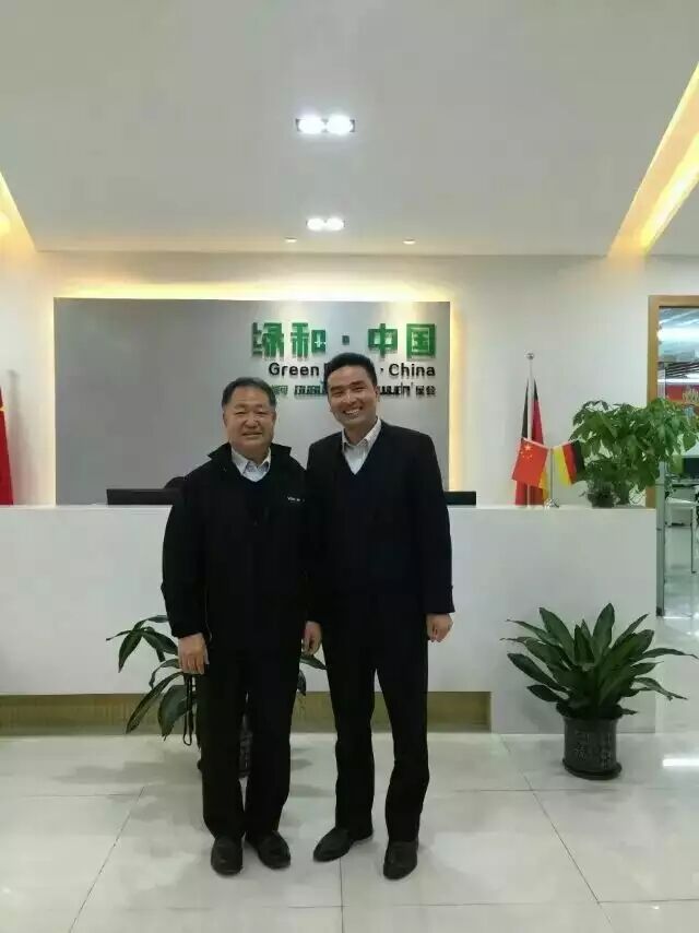 中國塑協(xié)塑木制品專業(yè)委員會(huì)會(huì)長與綠和集團(tuán)副總裁合照